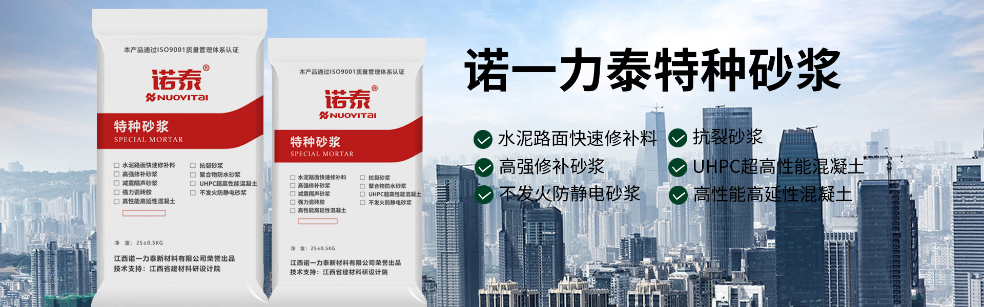 江西諾一力泰新材料有限公司位于江西宜春奉新縣,是專業從事灌漿料水泥路面修補砂漿、抗裂砂漿、防水砂漿保溫砂漿隔聲砂漿、粘結砂漿等砂漿系列產品生產銷售的廠家。